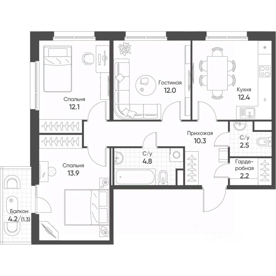 Продаётся 3-комнатная квартира в строящемся доме (Корпус 4-8), срок сдачи: III-кв. 2026, общей площадью 71.5 кв.м., на 8 этаже. "Счастье в Кольцово" - новый жилой комплекс Группы "Эталон" в р. п. Кольцово Новосибирской области.