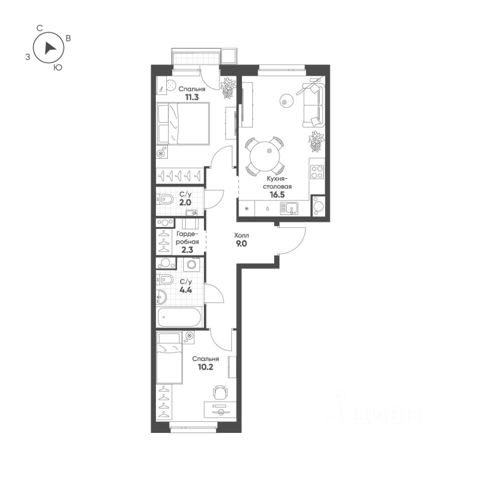 Продаётся 2-комнатная квартира в строящемся доме (Корпус 9-12), срок сдачи: IV-кв. 2028, общей площадью 55.7 кв.м., на 6 этаже. "Счастье в Кольцово" - новый жилой комплекс Группы "Эталон" в р. п. Кольцово Новосибирской области.