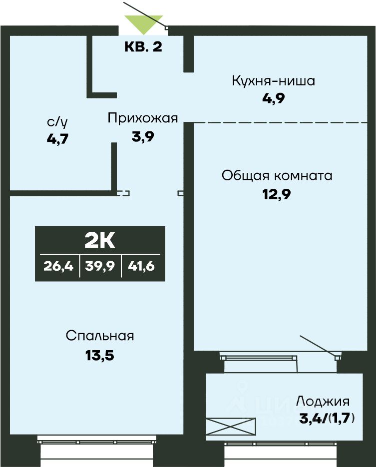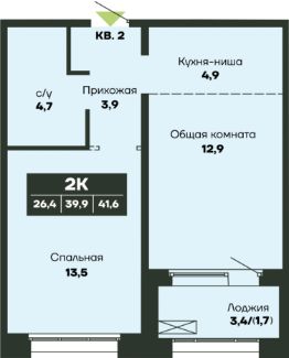 Общая площадь41,6 м²