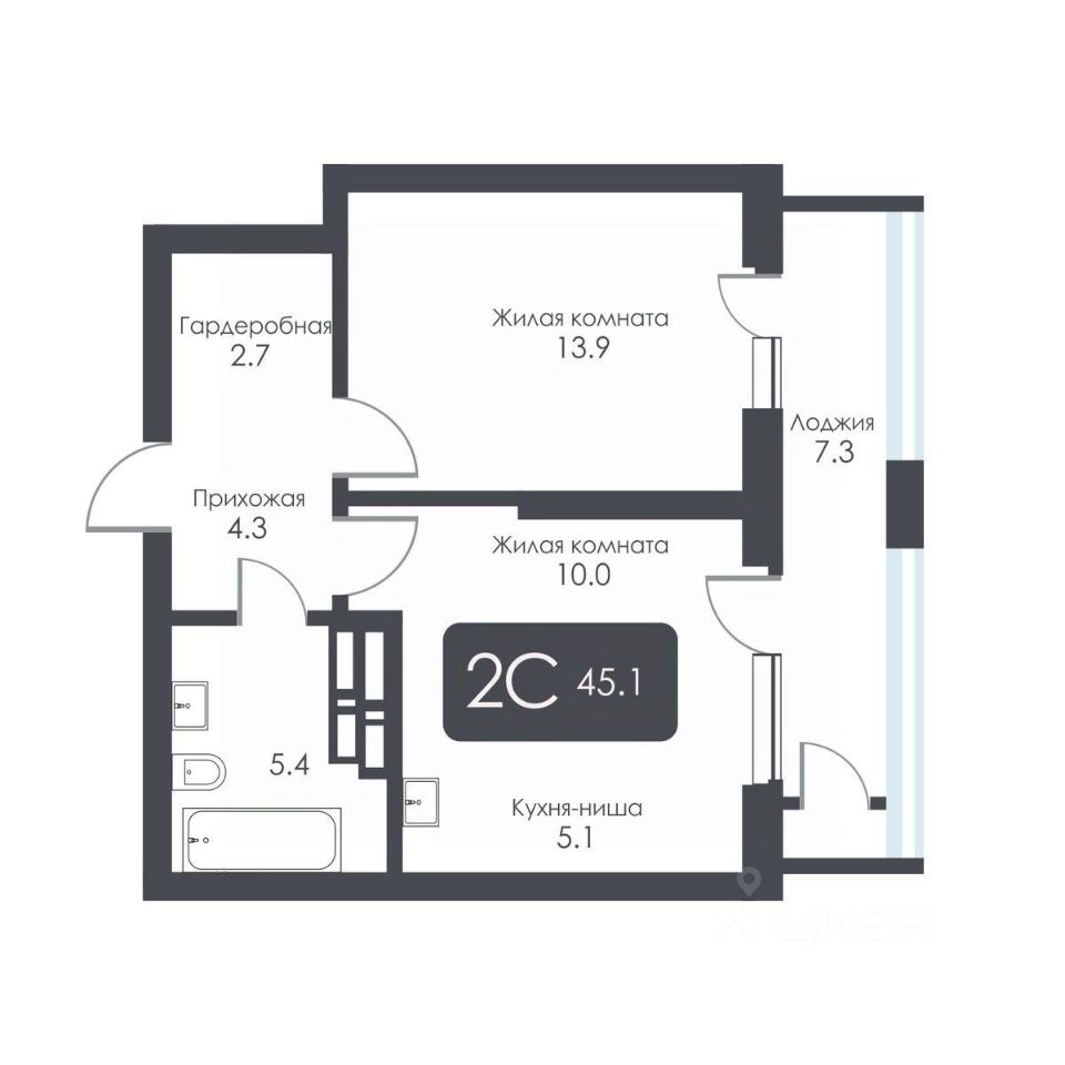 45,1 м²