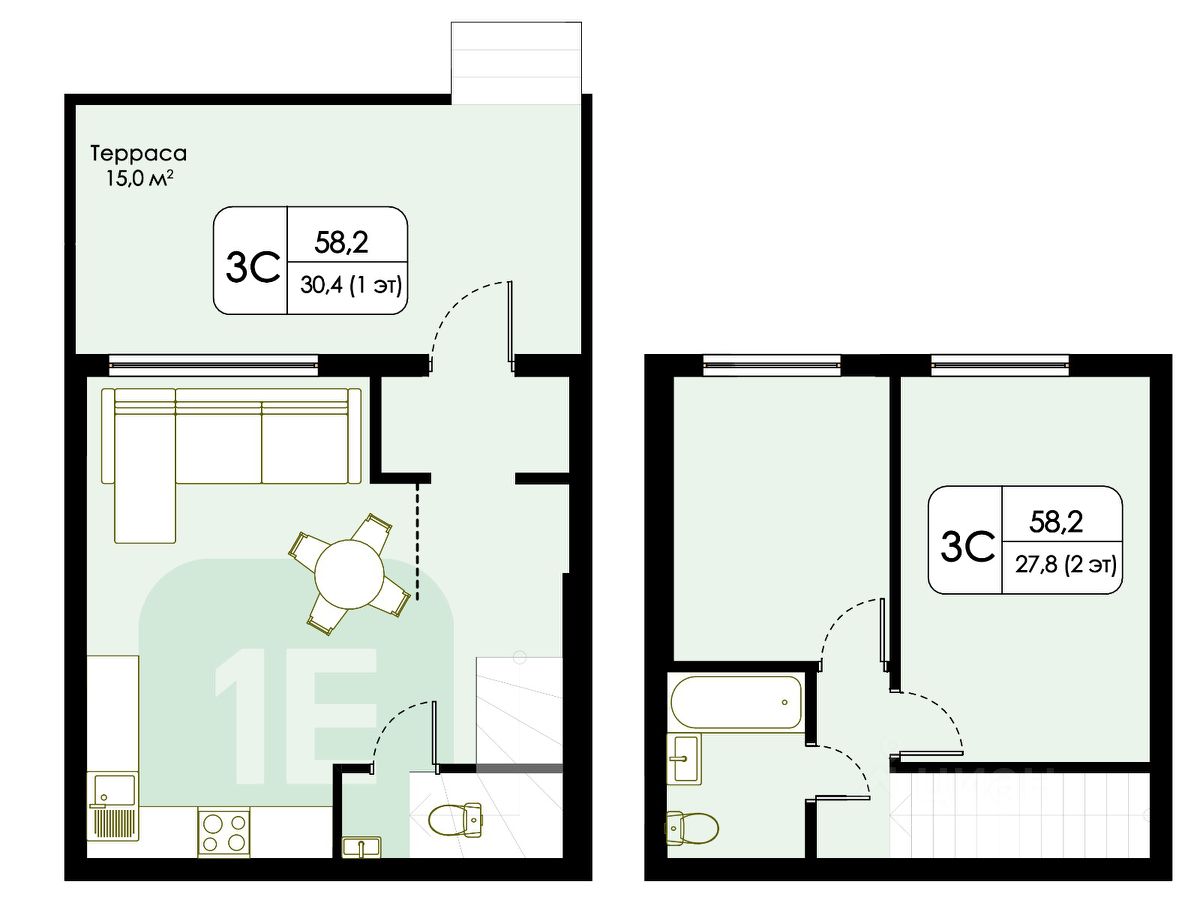 Просторная терраса площадью более 15 кв.м., которая повышает комфорт проживания.