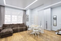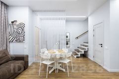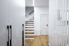 - на первом этаже: систему хранения в прихожей зоне, просторную кухню-гостиную, сан. узел;