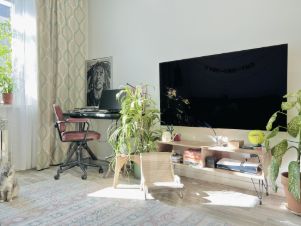 Окна выходят на юго-запад — квартира залита солнечным светом после 14:00.