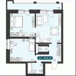 Общая площадь: 74,4 кв. м.