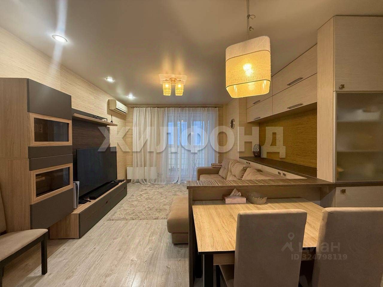 выполнен качественный ремонт , напольное покрытие в жилой зоне-паркет, напольное покрытие в холле- мрамор, двери межкомнатные- массив дуба, на стенах- обои, 3 кондиционера (в каждой комнате) , 2 санузла, теплый пол (ванна, корридор).