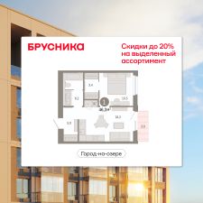 Квартира с кухней-гостиной и одной спальней в проекте Город-на-озере. Особенности планировки: балкон, гардеробная, потолки 3 м и выше, предчистовая отделка.