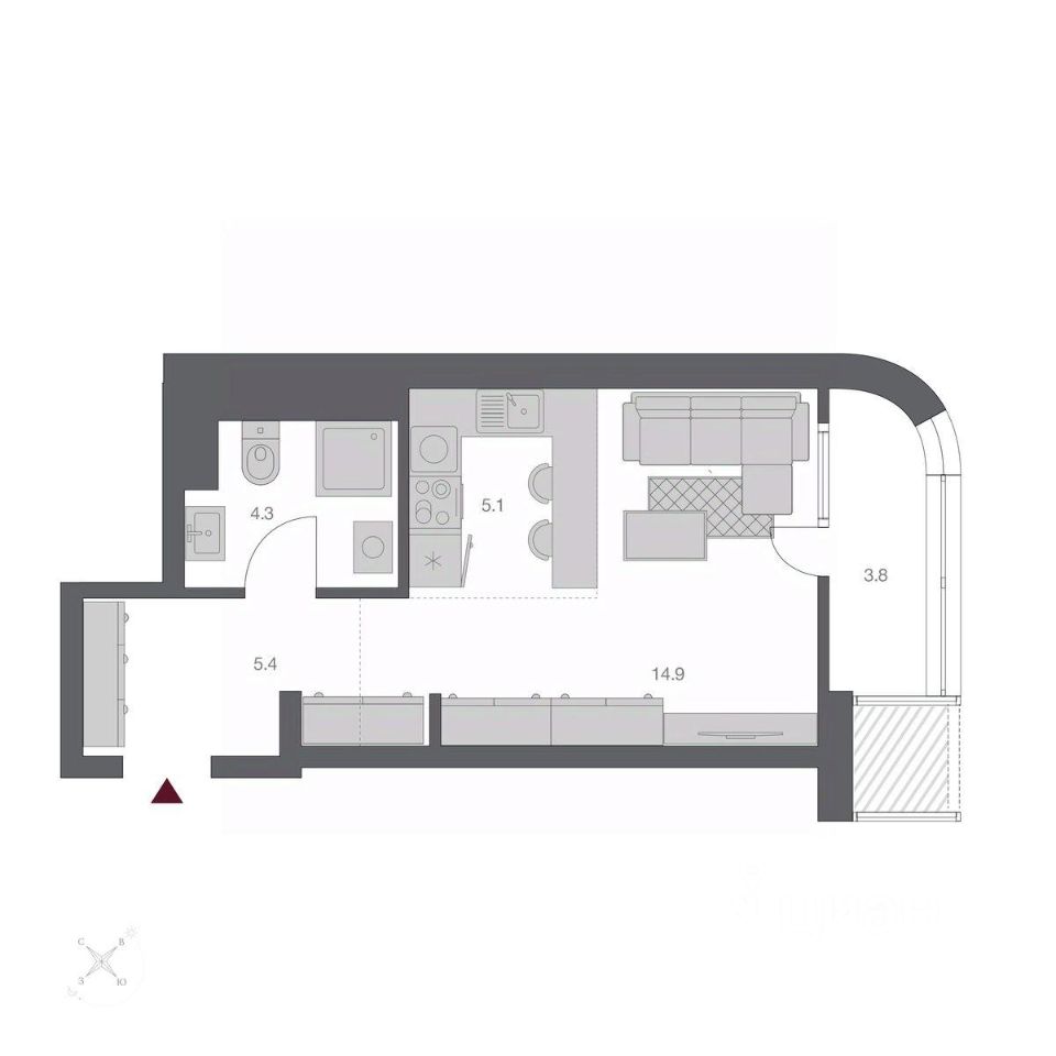 Жилая площадь14,9 м²