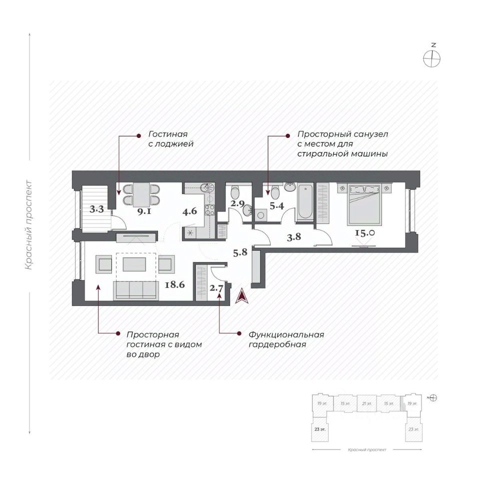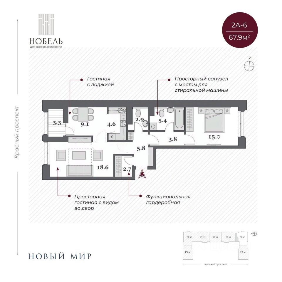 Дом сдан, приглашаем на экскурсию! "Нобель" на Красном проспекте в 2025 году стал победителем в номинации Жилая недвижимость. Бизнес-класс. Регионы (Urban Awards 2025), в 2024 признан Самым инвестиционно-привлекательным проектом УФО+СФО+ДФО (Urban Awards 2024). Дом "Нобель" в Новосибирске спроектирован компанией "Новый мир" совместно с международной командой архитекторов из Великобритании, Италии и Сербии. Уникальность проекта, в том, что при строительстве здания в центральной локации города удалось сохранить более 200 деревьев ценных хвойных пород на территории комплекса. При этом в продукте было сформировано более 50 вариантов функциональных планировочных решений. И все это в великолепной архитектурной форме в стиле ар-деко. Общая площадь территории 2 гектара! Именно это позволило специалистам компании "Новый мир" спроектировать уникальный двор-парк с фонтаном и колоннадой. Архитектура Один из принципов нашей компании: сохранять все лучшее в каждой локации. Архитектурное окружение дома "Нобель" представлено сталинской неоклассикой, именно поэтому специалисты компании "Новый мир" выбрали стиль ар-деко, который называют наследником неоклассицизма и модернизма. "Нобель" — это архитектура, устремленная вверх. 5 башен с величественными шпилями, благородный фасад из натурального гранита, увеличенная площадь остекления с применением архитектурного стекла. И — чего не встретишь в других проектах, — роскошная гранитная прогулочная колоннада — второй уровень благоустройства. Двор Ландшафтный дизайн стилистически продолжает архитектурный замысел ар-деко: строгая закономерность, смелые линии, геометрические узоры, отсутствие ярких оттенков. Пространство двора-парка разделено на две части. Они отделены друг от друга колоннадой, по которой можно прогуливаться на высоте 10 метров и любоваться Красным проспектом. Зоны отдыха, игровые площадки, беседки соединены дорожками и создают один из узнаваемых узоров европейского стиля. Хвойные гиганты и фонтан добавляют особый шик. Холлы Семь парадных холлов дома "Нобель" облицованы широкоформатным итальянским керамогранитом. Мягкий свет, парящие потолки, дизайнерские люстры, бесшумные скоростные лифты, — каждый элемент создает атмосферу дорогого уюта и респектабельности. В доме предусмотрен консьерж-сервис для удобства жителей и гостей. Отделка White Box Квартиры дома Нобель сдаются в предчистовой отделке white box. Она сделана с той же тщательностью и вниманием к малейшим деталям, как и все другие работы по проекту. Квартиры полностью готовы к чистовой отделке.