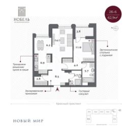 Дом сдан, приглашаем на экскурсию! "Нобель" на Красном проспекте в 2025 году стал победителем в номинации Жилая недвижимость. Бизнес-класс. Регионы (Urban Awards 2025), в 2024 признан Самым инвестиционно-привлекательным проектом УФО+СФО+ДФО (Urban Awards 2024). Дом "Нобель" в Новосибирске спроектирован компанией "Новый мир" совместно с международной командой архитекторов из Великобритании, Италии и Сербии. Уникальность проекта, в том, что при строительстве здания в центральной локации города удалось сохранить более 200 деревьев ценных хвойных пород на территории комплекса. При этом в продукте было сформировано более 50 вариантов функциональных планировочных решений. И все это в великолепной архитектурной форме в стиле ар-деко. Общая площадь территории 2 гектара! Именно это позволило специалистам компании "Новый мир" спроектировать уникальный двор-парк с фонтаном и колоннадой. Архитектура Один из принципов нашей компании: сохранять все лучшее в каждой локации. Архитектурное окружение дома "Нобель" представлено сталинской неоклассикой, именно поэтому специалисты компании "Новый мир" выбрали стиль ар-деко, который называют наследником неоклассицизма и модернизма. "Нобель" — это архитектура, устремленная вверх. 5 башен с величественными шпилями, благородный фасад из натурального гранита, увеличенная площадь остекления с применением архитектурного стекла. И — чего не встретишь в других проектах, — роскошная гранитная прогулочная колоннада — второй уровень благоустройства. Двор Ландшафтный дизайн стилистически продолжает архитектурный замысел ар-деко: строгая закономерность, смелые линии, геометрические узоры, отсутствие ярких оттенков. Пространство двора-парка разделено на две части. Они отделены друг от друга колоннадой, по которой можно прогуливаться на высоте 10 метров и любоваться Красным проспектом. Зоны отдыха, игровые площадки, беседки соединены дорожками и создают один из узнаваемых узоров европейского стиля. Хвойные гиганты и фонтан добавляют особый шик. Холлы Семь парадных холлов дома "Нобель" облицованы широкоформатным итальянским керамогранитом. Мягкий свет, парящие потолки, дизайнерские люстры, бесшумные скоростные лифты, — каждый элемент создает атмосферу дорогого уюта и респектабельности. В доме предусмотрен консьерж-сервис для удобства жителей и гостей. Отделка White Box Квартиры дома Нобель сдаются в предчистовой отделке white box. Она сделана с той же тщательностью и вниманием к малейшим деталям, как и все другие работы по проекту. Квартиры полностью готовы к чистовой отделке.