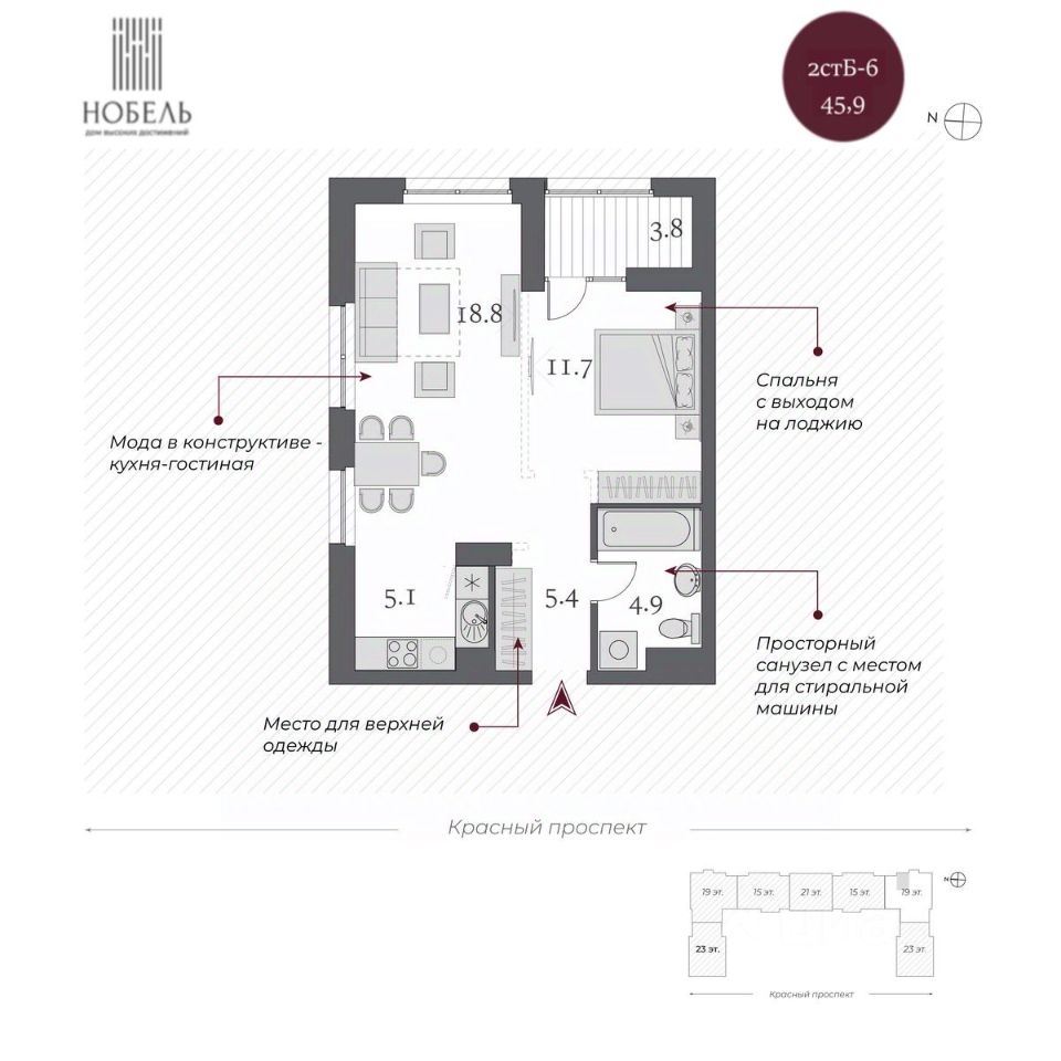 Дом сдан, приглашаем на экскурсию! "Нобель" на Красном проспекте в 2025 году стал победителем в номинации Жилая недвижимость. Бизнес-класс. Регионы (Urban Awards 2025), в 2024 признан Самым инвестиционно-привлекательным проектом УФО+СФО+ДФО (Urban Awards 2024). Дом "Нобель" в Новосибирске спроектирован компанией "Новый мир" совместно с международной командой архитекторов из Великобритании, Италии и Сербии. Уникальность проекта, в том, что при строительстве здания в центральной локации города удалось сохранить более 200 деревьев ценных хвойных пород на территории комплекса. При этом в продукте было сформировано более 50 вариантов функциональных планировочных решений. И все это в великолепной архитектурной форме в стиле ар-деко. Общая площадь территории 2 гектара! Именно это позволило специалистам компании "Новый мир" спроектировать уникальный двор-парк с фонтаном и колоннадой. Архитектура Один из принципов нашей компании: сохранять все лучшее в каждой локации. Архитектурное окружение дома "Нобель" представлено сталинской неоклассикой, именно поэтому специалисты компании "Новый мир" выбрали стиль ар-деко, который называют наследником неоклассицизма и модернизма. "Нобель" — это архитектура, устремленная вверх. 5 башен с величественными шпилями, благородный фасад из натурального гранита, увеличенная площадь остекления с применением архитектурного стекла. И — чего не встретишь в других проектах, — роскошная гранитная прогулочная колоннада — второй уровень благоустройства. Двор Ландшафтный дизайн стилистически продолжает архитектурный замысел ар-деко: строгая закономерность, смелые линии, геометрические узоры, отсутствие ярких оттенков. Пространство двора-парка разделено на две части. Они отделены друг от друга колоннадой, по которой можно прогуливаться на высоте 10 метров и любоваться Красным проспектом. Зоны отдыха, игровые площадки, беседки соединены дорожками и создают один из узнаваемых узоров европейского стиля. Хвойные гиганты и фонтан добавляют особый шик. Холлы Семь парадных холлов дома "Нобель" облицованы широкоформатным итальянским керамогранитом. Мягкий свет, парящие потолки, дизайнерские люстры, бесшумные скоростные лифты, — каждый элемент создает атмосферу дорогого уюта и респектабельности. В доме предусмотрен консьерж-сервис для удобства жителей и гостей. Отделка White Box Квартиры дома Нобель сдаются в предчистовой отделке white box. Она сделана с той же тщательностью и вниманием к малейшим деталям, как и все другие работы по проекту. Квартиры полностью готовы к чистовой отделке.