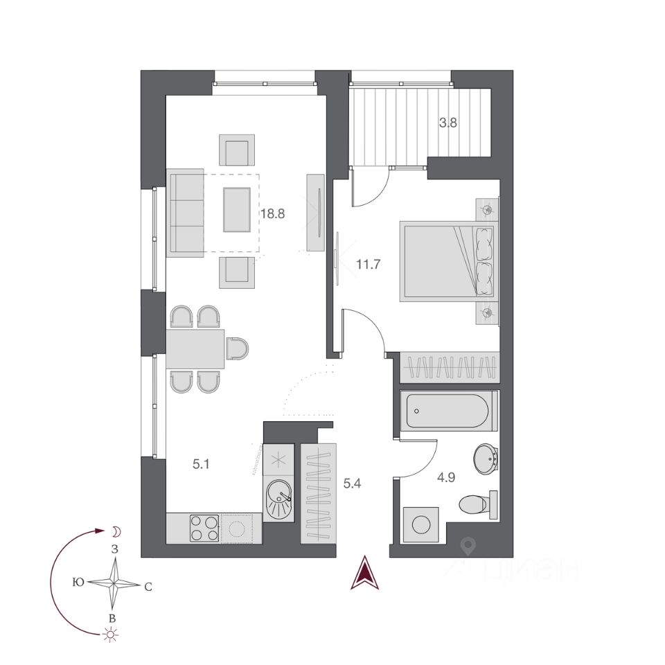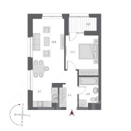 Площадь кухни5,1 м²