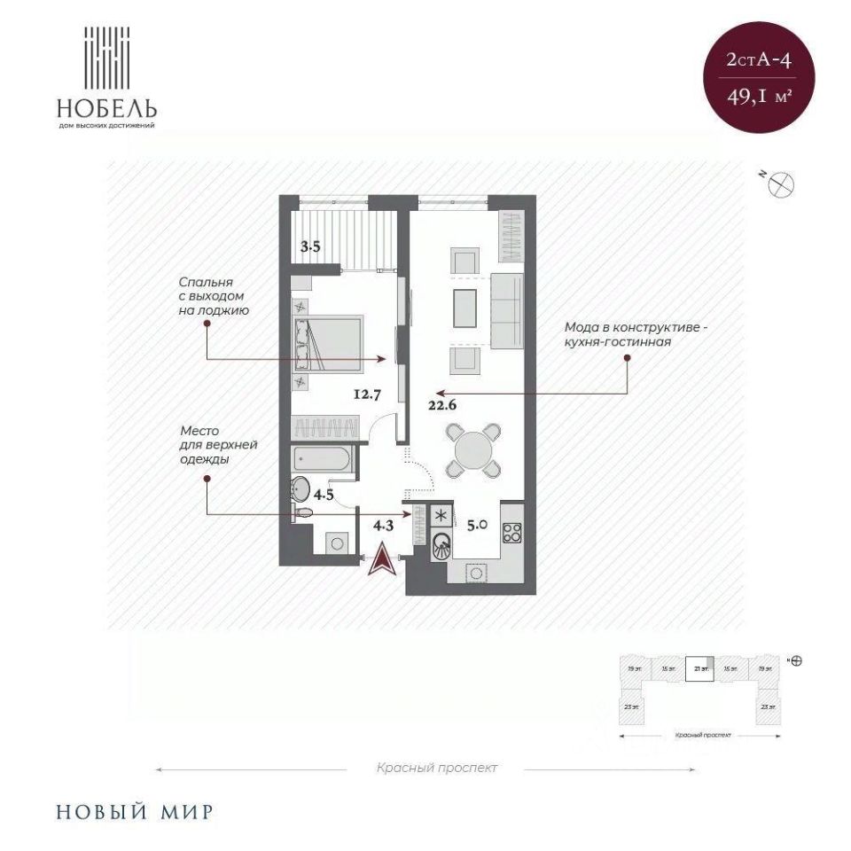 Дом сдан, приглашаем на экскурсию! "Нобель" на Красном проспекте в 2025 году стал победителем в номинации Жилая недвижимость. Бизнес-класс. Регионы (Urban Awards 2025), в 2024 признан Самым инвестиционно-привлекательным проектом УФО+СФО+ДФО (Urban Awards 2024). Дом "Нобель" в Новосибирске спроектирован компанией "Новый мир" совместно с международной командой архитекторов из Великобритании, Италии и Сербии. Уникальность проекта, в том, что при строительстве здания в центральной локации города удалось сохранить более 200 деревьев ценных хвойных пород на территории комплекса. При этом в продукте было сформировано более 50 вариантов функциональных планировочных решений. И все это в великолепной архитектурной форме в стиле ар-деко. Общая площадь территории 2 гектара! Именно это позволило специалистам компании "Новый мир" спроектировать уникальный двор-парк с фонтаном и колоннадой. Архитектура Один из принципов нашей компании: сохранять все лучшее в каждой локации. Архитектурное окружение дома "Нобель" представлено сталинской неоклассикой, именно поэтому специалисты компании "Новый мир" выбрали стиль ар-деко, который называют наследником неоклассицизма и модернизма. "Нобель" — это архитектура, устремленная вверх. 5 башен с величественными шпилями, благородный фасад из натурального гранита, увеличенная площадь остекления с применением архитектурного стекла. И — чего не встретишь в других проектах, — роскошная гранитная прогулочная колоннада — второй уровень благоустройства. Двор Ландшафтный дизайн стилистически продолжает архитектурный замысел ар-деко: строгая закономерность, смелые линии, геометрические узоры, отсутствие ярких оттенков. Пространство двора-парка разделено на две части. Они отделены друг от друга колоннадой, по которой можно прогуливаться на высоте 10 метров и любоваться Красным проспектом. Зоны отдыха, игровые площадки, беседки соединены дорожками и создают один из узнаваемых узоров европейского стиля. Хвойные гиганты и фонтан добавляют особый шик. Холлы Семь парадных холлов дома "Нобель" облицованы широкоформатным итальянским керамогранитом. Мягкий свет, парящие потолки, дизайнерские люстры, бесшумные скоростные лифты, — каждый элемент создает атмосферу дорогого уюта и респектабельности. В доме предусмотрен консьерж-сервис для удобства жителей и гостей. Отделка White Box Квартиры дома Нобель сдаются в предчистовой отделке white box. Она сделана с той же тщательностью и вниманием к малейшим деталям, как и все другие работы по проекту. Квартиры полностью готовы к чистовой отделке.
