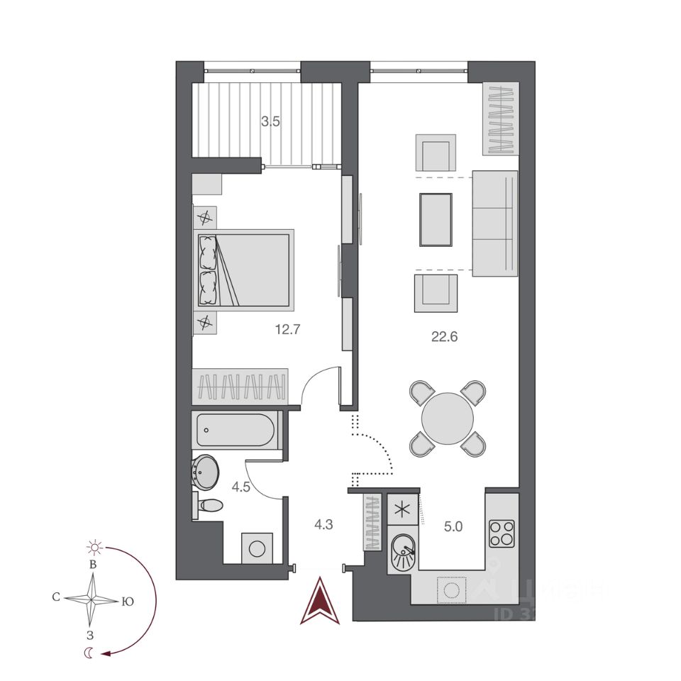 Общая площадь48,7 м²