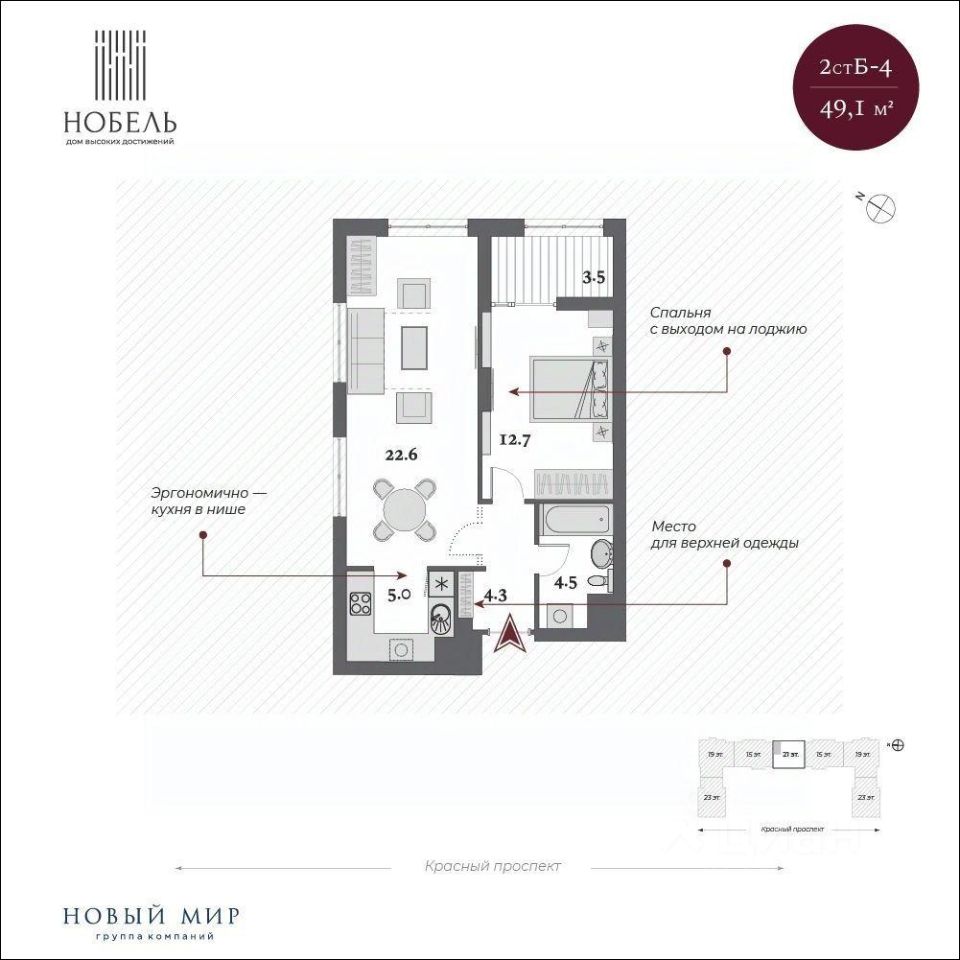 Дом сдан, приглашаем на экскурсию! "Нобель" на Красном проспекте в 2025 году стал победителем в номинации Жилая недвижимость. Бизнес-класс. Регионы (Urban Awards 2025), в 2024 признан Самым инвестиционно-привлекательным проектом УФО+СФО+ДФО (Urban Awards 2024). Дом "Нобель" в Новосибирске спроектирован компанией "Новый мир" совместно с международной командой архитекторов из Великобритании, Италии и Сербии. Уникальность проекта, в том, что при строительстве здания в центральной локации города удалось сохранить более 200 деревьев ценных хвойных пород на территории комплекса. При этом в продукте было сформировано более 50 вариантов функциональных планировочных решений. И все это в великолепной архитектурной форме в стиле ар-деко. Общая площадь территории 2 гектара! Именно это позволило специалистам компании "Новый мир" спроектировать уникальный двор-парк с фонтаном и колоннадой. Архитектура Один из принципов нашей компании: сохранять все лучшее в каждой локации. Архитектурное окружение дома "Нобель" представлено сталинской неоклассикой, именно поэтому специалисты компании "Новый мир" выбрали стиль ар-деко, который называют наследником неоклассицизма и модернизма. "Нобель" — это архитектура, устремленная вверх. 5 башен с величественными шпилями, благородный фасад из натурального гранита, увеличенная площадь остекления с применением архитектурного стекла. И — чего не встретишь в других проектах, — роскошная гранитная прогулочная колоннада — второй уровень благоустройства. Двор Ландшафтный дизайн стилистически продолжает архитектурный замысел ар-деко: строгая закономерность, смелые линии, геометрические узоры, отсутствие ярких оттенков. Пространство двора-парка разделено на две части. Они отделены друг от друга колоннадой, по которой можно прогуливаться на высоте 10 метров и любоваться Красным проспектом. Зоны отдыха, игровые площадки, беседки соединены дорожками и создают один из узнаваемых узоров европейского стиля. Хвойные гиганты и фонтан добавляют особый шик. Холлы Семь парадных холлов дома "Нобель" облицованы широкоформатным итальянским керамогранитом. Мягкий свет, парящие потолки, дизайнерские люстры, бесшумные скоростные лифты, — каждый элемент создает атмосферу дорогого уюта и респектабельности. В доме предусмотрен консьерж-сервис для удобства жителей и гостей. Отделка White Box Квартиры дома Нобель сдаются в предчистовой отделке white box. Она сделана с той же тщательностью и вниманием к малейшим деталям, как и все другие работы по проекту. Квартиры полностью готовы к чистовой отделке.