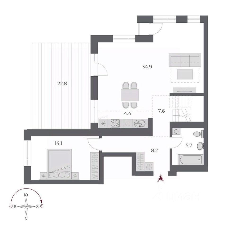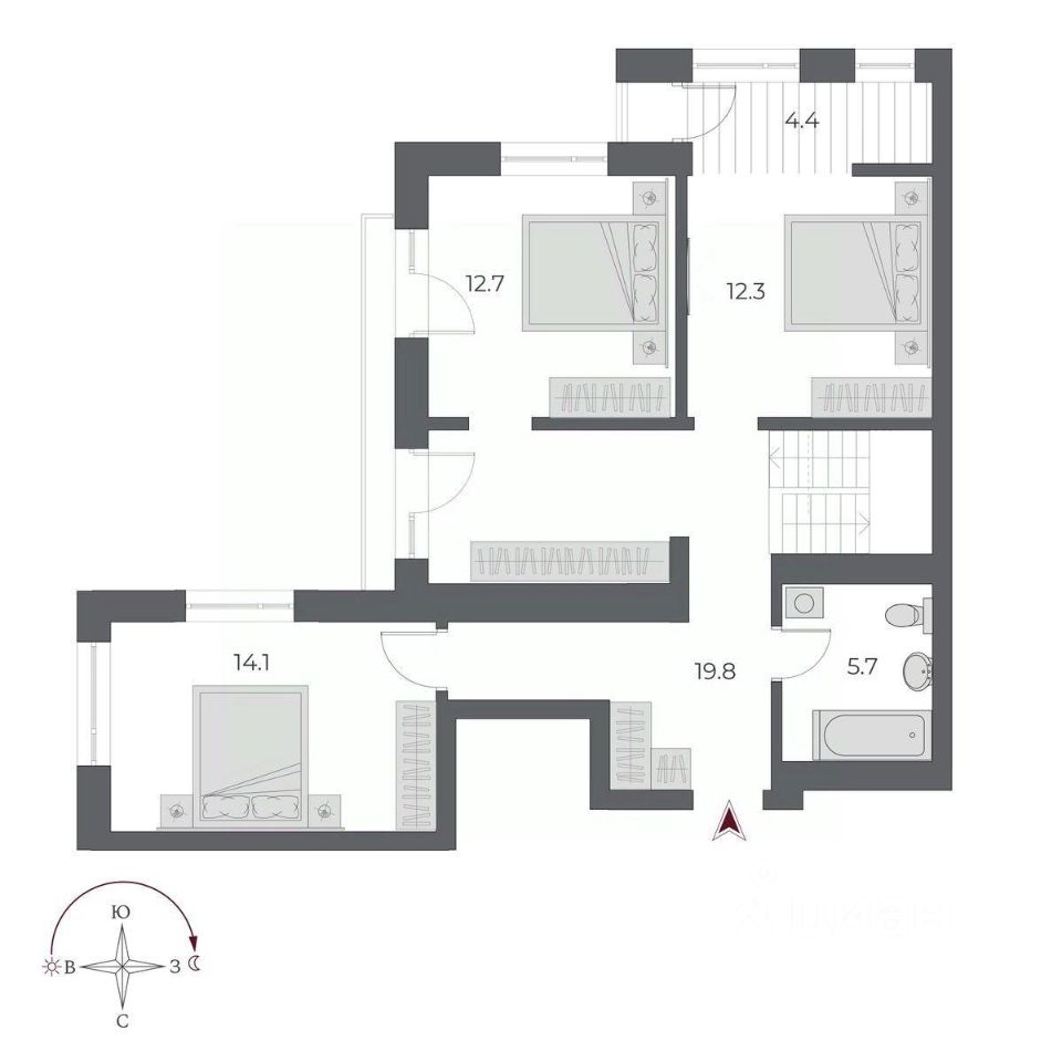 Площадь кухни4,4 м²