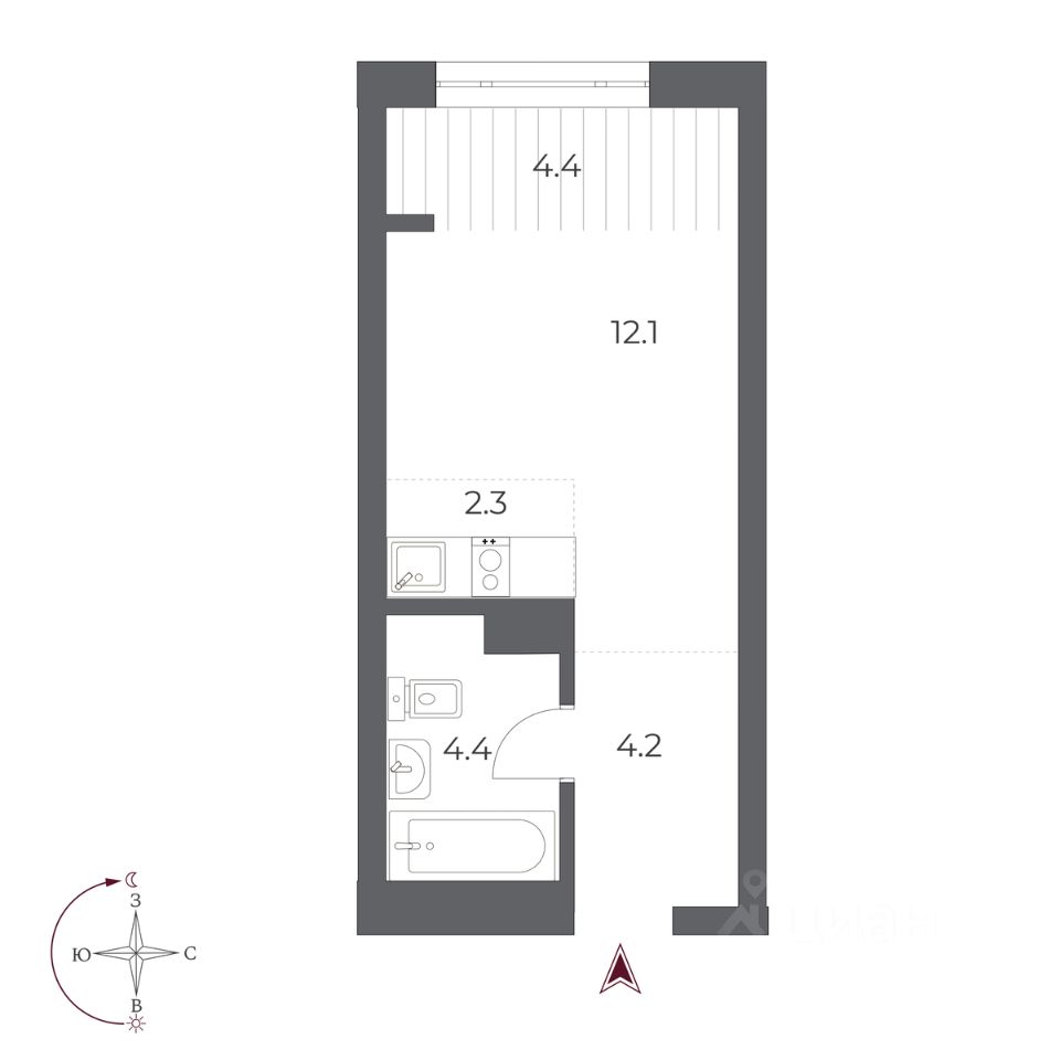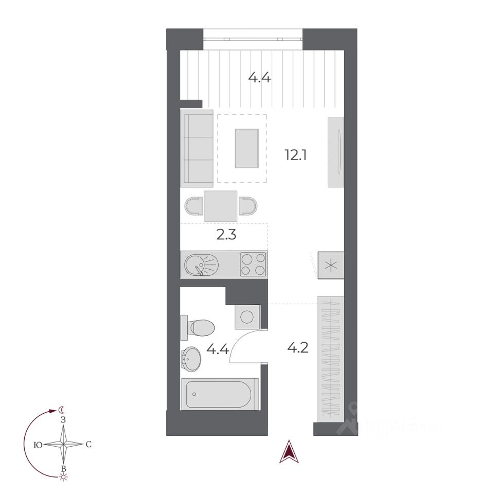 Жилая площадь12,1 м²