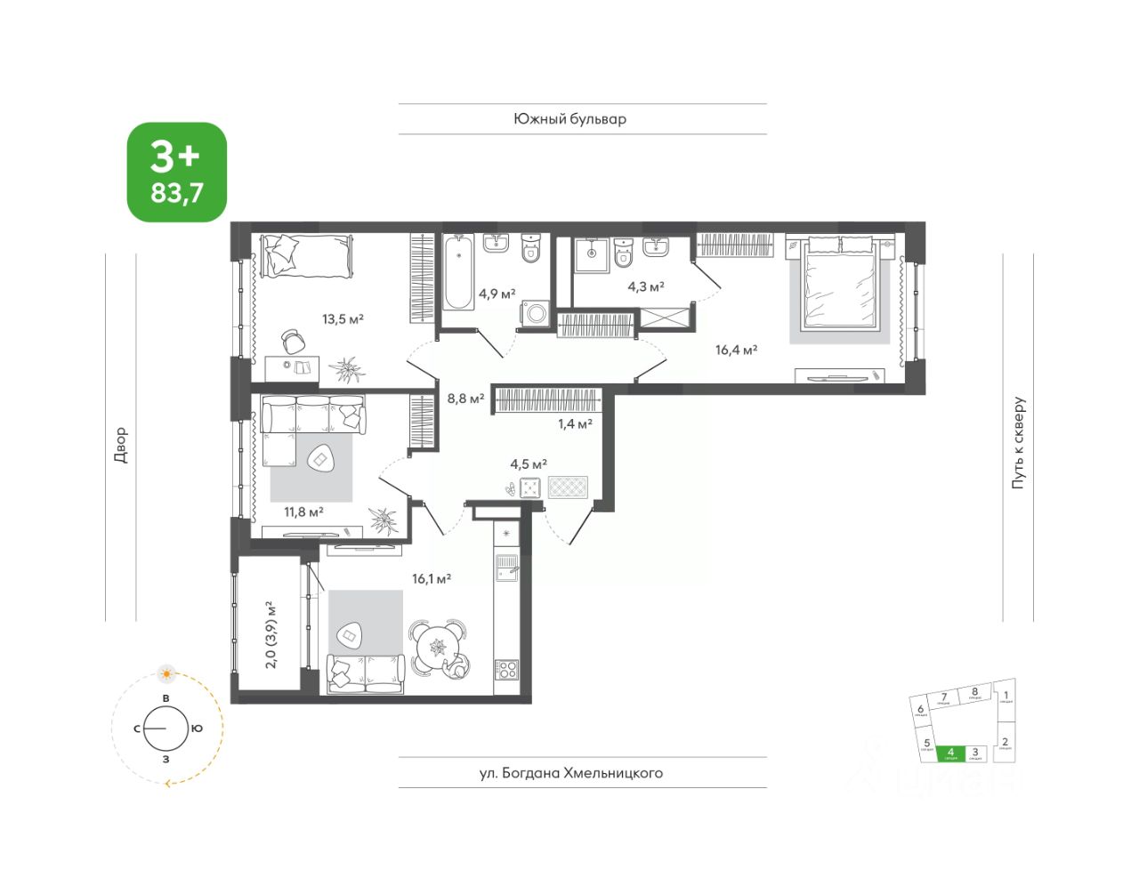 Две изолированные спальни обеспечивают личное пространство каждому члену семьи