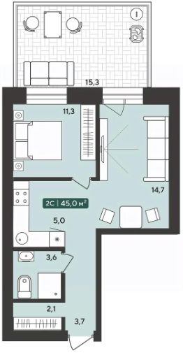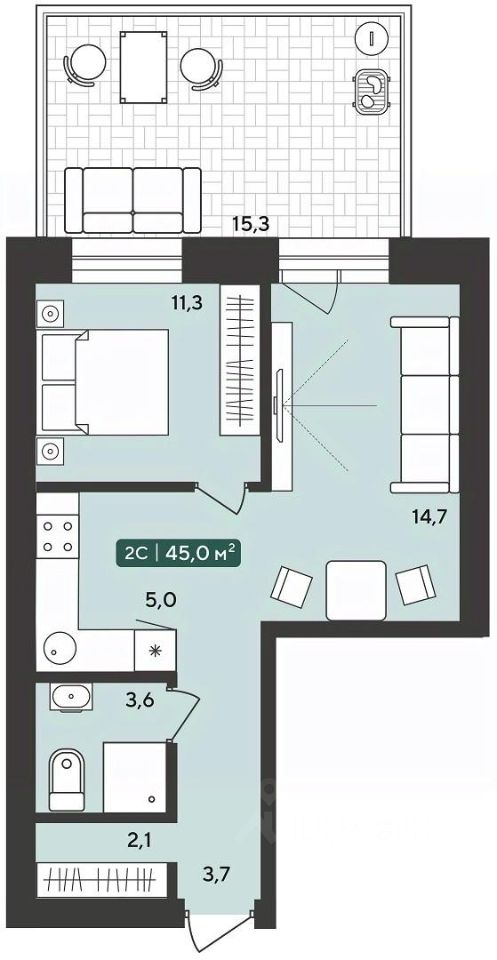 Общая площадь45 м²