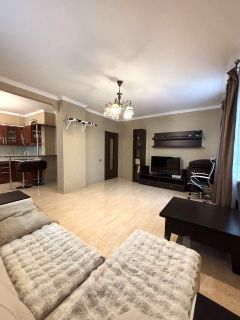 Несомненное преимущество данного варианта - прекрасная планировка на две стороны с просторным остекленным в пол балконом. Из окон открывается красивый панорамный вид на город. Большая прихожая с распланированным местом для хранения вещей и просторная кухня-гостиная. Квартира очень тихая, соседи только с одной стороны. Ремонт делали для себя, использованы материалы отличного качества, на полу паркет. Кафель в сан узле от пола до потолка, установлены теплые электрические полы, водонагреватель, душевая кабина со встроенным радио. Также в квартире установлен кондиционер для поддержания комфортной температуры летом.