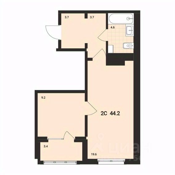 Общая площадь44,2 м²