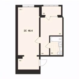 Общая площадь46,4 м²
