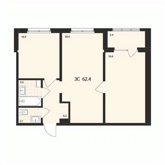 Общая площадь62,4 м²