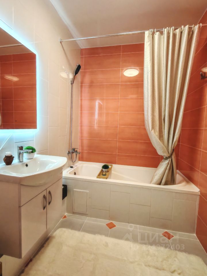 **Санузел** — современная отделка, стильная сантехника, LED-подсветка.