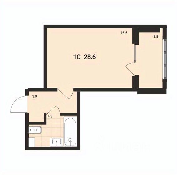 Общая площадь28,6 м²