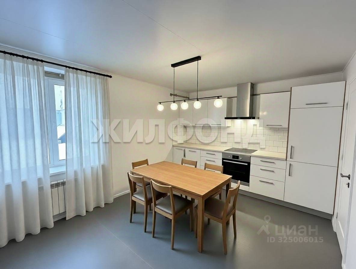 Просторная кухня с балконом, в которой можно готовить и принимать гостей, размер комнаты позволяет сделать зонирование для многофункционального использования помещения.