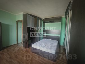 Комната очень просторная, в ней выделена зона спальни с двуспальной кроватью и рабочим уголком. Много удобных мест для хранения. Другая часть комнаты может выполнять функцию гостиной, где расположен большой угловой диван и стенка с местом под телевизор.
