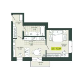 Общая площадь42,97 м²