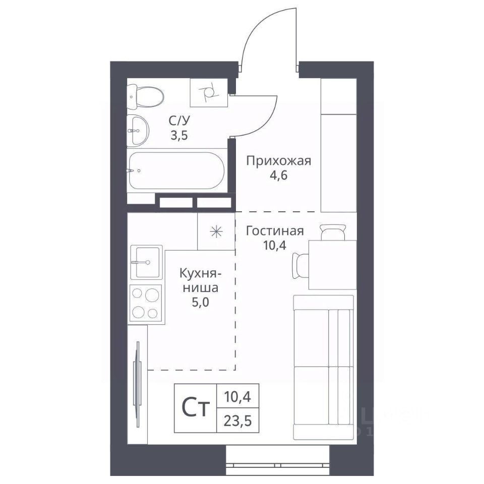 Продается 1-комн. студия с отделкой White box. Квартира расположена на 2 этаже 10 этажного монолитно-кирпичного дома в Экограде "12 дворов" от группы компаний "ПОЛЯКОВ".