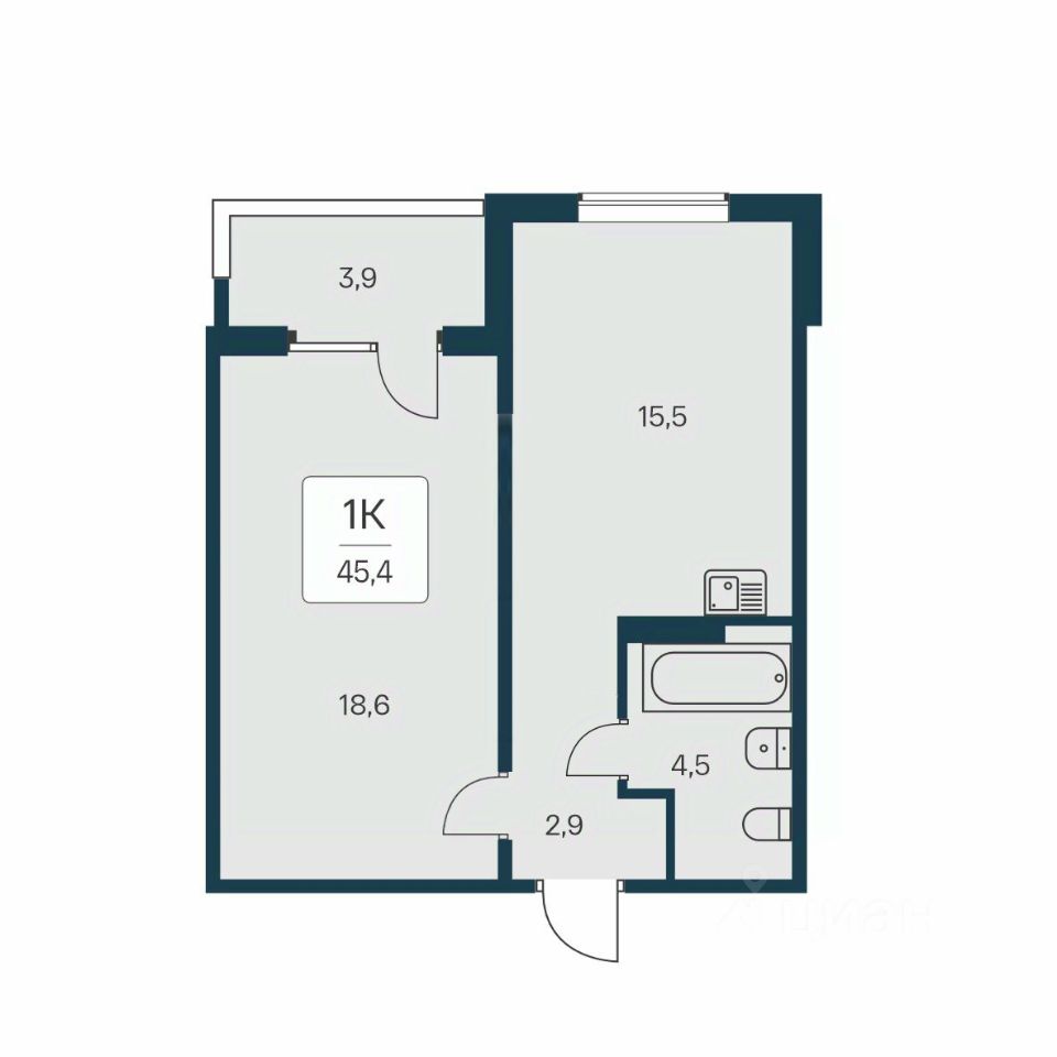 Общая площадь45,4 м²