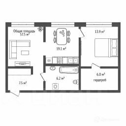 Квартира с кухней-гостиной и двумя спальнями, с большим гардеробом. По желанию можно организовать планировку по своему усмотрению, стены двигаются/убираются, они не несущие.