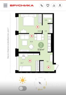 2-КОМН. КВАРТИРА с предчистовой отделкой в ЖК Квартал На Декабристов на 11 этаже. Общая площадь: 58,5 кв.м.