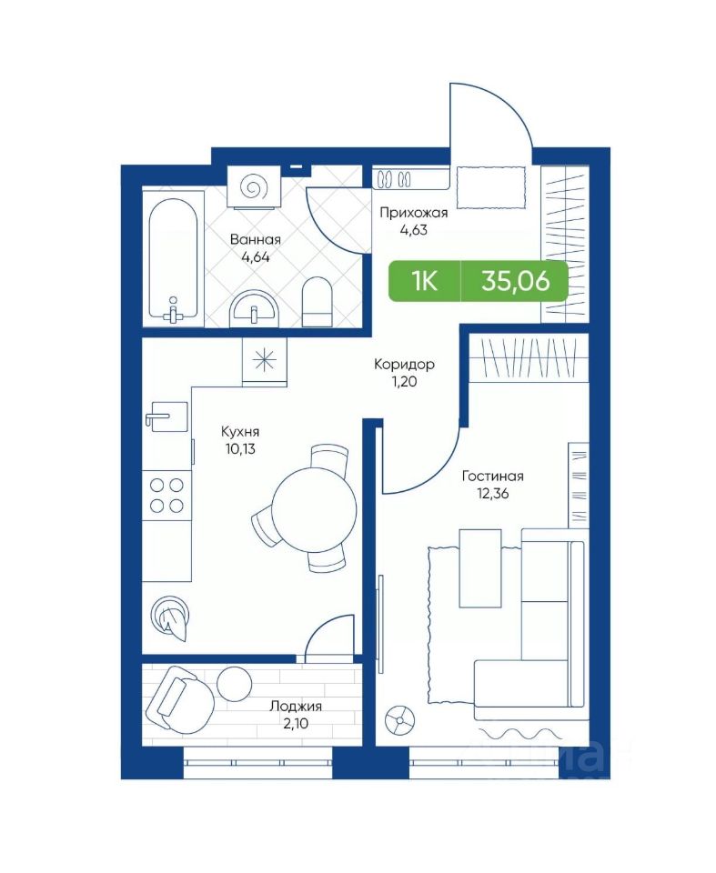 Общая площадь35,06 м²
