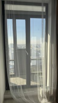 Панорамные окна от застройщика. Полностью подавляют шум с улицы. Выход на просторную лоджию из обеих комнат. Зимой в квартире тепло, нет сквозняков, температура радиаторов регулируется индивидуально в каждой комнате для Вашего комфорта.