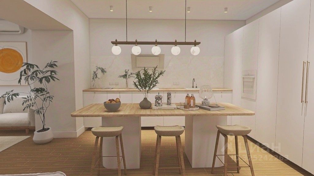 Общая площадь: 120 м2 с продуманной функциональной планировкой: большая кухня-гостиная, кабинет, две просторные спальни, вместительная гардеробная. ,