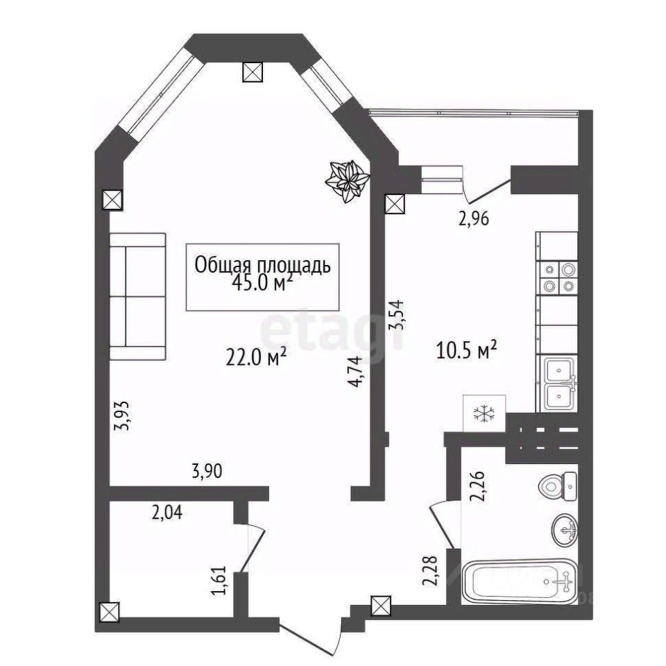 Предлагаем вашему вниманию полноценную однокомнатную квартиру ЖК Прибрежный.