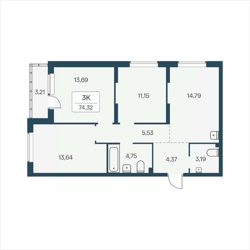 "В продаже 3-комнатная квартира, площадью 74.32, под номером 9 в новом Доме ЖК "Расцветай на Зорге"." Жилой квартал "Расцветай на Зорге" расположен в экологически чистом месте Кировского района,