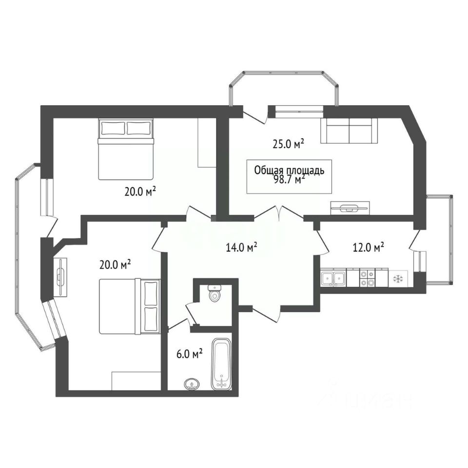 Общая площадь 98,7 кв.м: