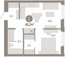1-комн. квартира от застройщика с предчистовой отделкой в ЖК "Город-на-озере" на 8 этаже. Общая площадь: 43.23 кв.м., жилая: 10.5 кв.м., площадь просторной кухни-гостиной: 18.2 кв.м. Все окна выходят на одну сторону. В квартире один совмещенный санузел. Высота потолков 3.0 м.