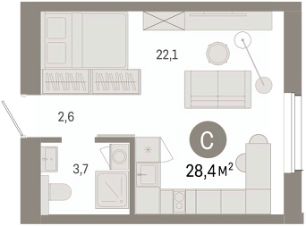 Однокомнатная студия с предчистовой отделкой в ЖК "Город-на-озере" на 7 этаже. Общая площадь: 28.44 кв.м., площадь гостиной 22.1 кв.м., из которых 10 кв.м. выделено под кухонную зону. Все окна выходят на одну сторону. В квартире один совмещенный санузел. Высота потолков 3.0 м.