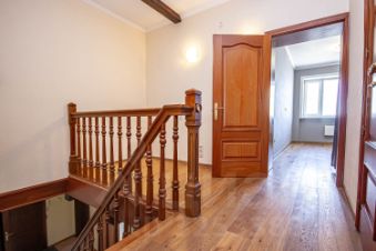 Есть 2 гардеробные комнаты, мини кладовая под лестницей. Ремонт выполнен в спокойных тонах из достойных материалов. В комнатах на полу австрийский дубовый паркет. В коридоре и в кухне на полу итальянский керамогранит. Все комнаты изолированные, на первом этаже кухня, очень просторная гостиная с дровяным камином, спальня, ванная комната. На втором этаже две спальни и ванная комната. Лестница и двери, проемы из натурального дуба. Есть 3 лоджии и 1 застекленный балкон.