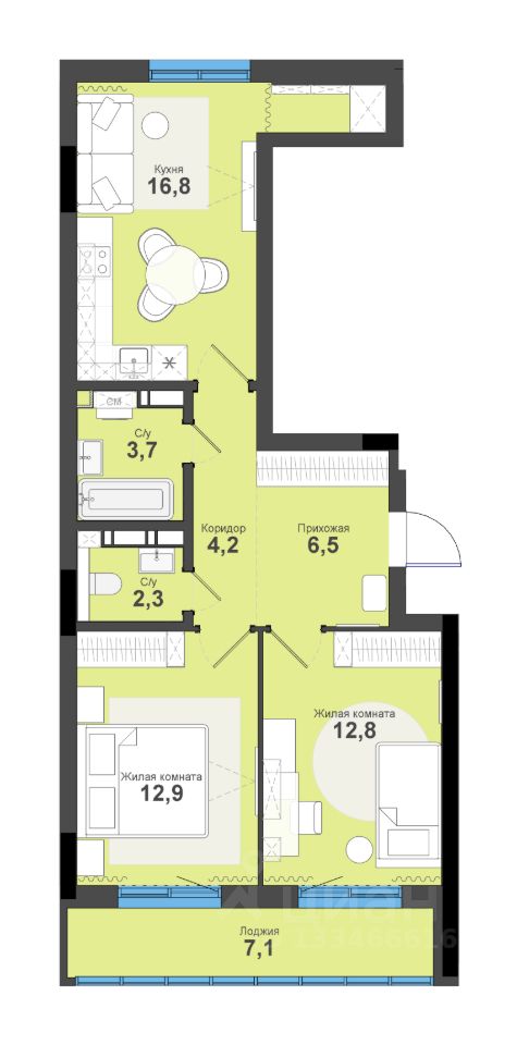 Общая площадь66,3 м²