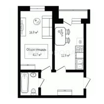 Общая площадь: 41,7 м² почувствуйте себя свободно и комфортно!