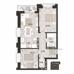 Продаётся 3-комнатная квартира в строящемся доме (Дом 2), срок сдачи: II-кв. 2028, общей площадью 64.39 кв.м., на 18 этаже. "Авторский квартал" - это история, где главные герои - вы и ваша семья.