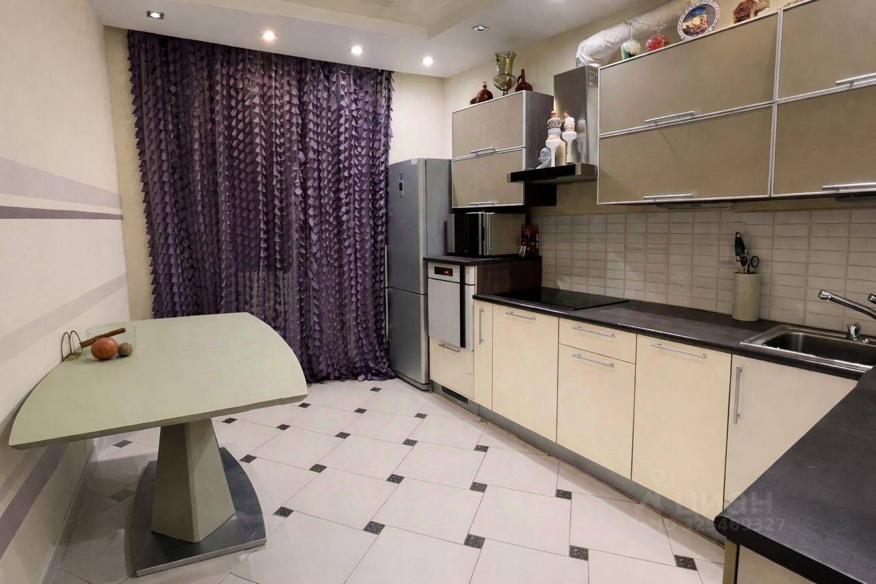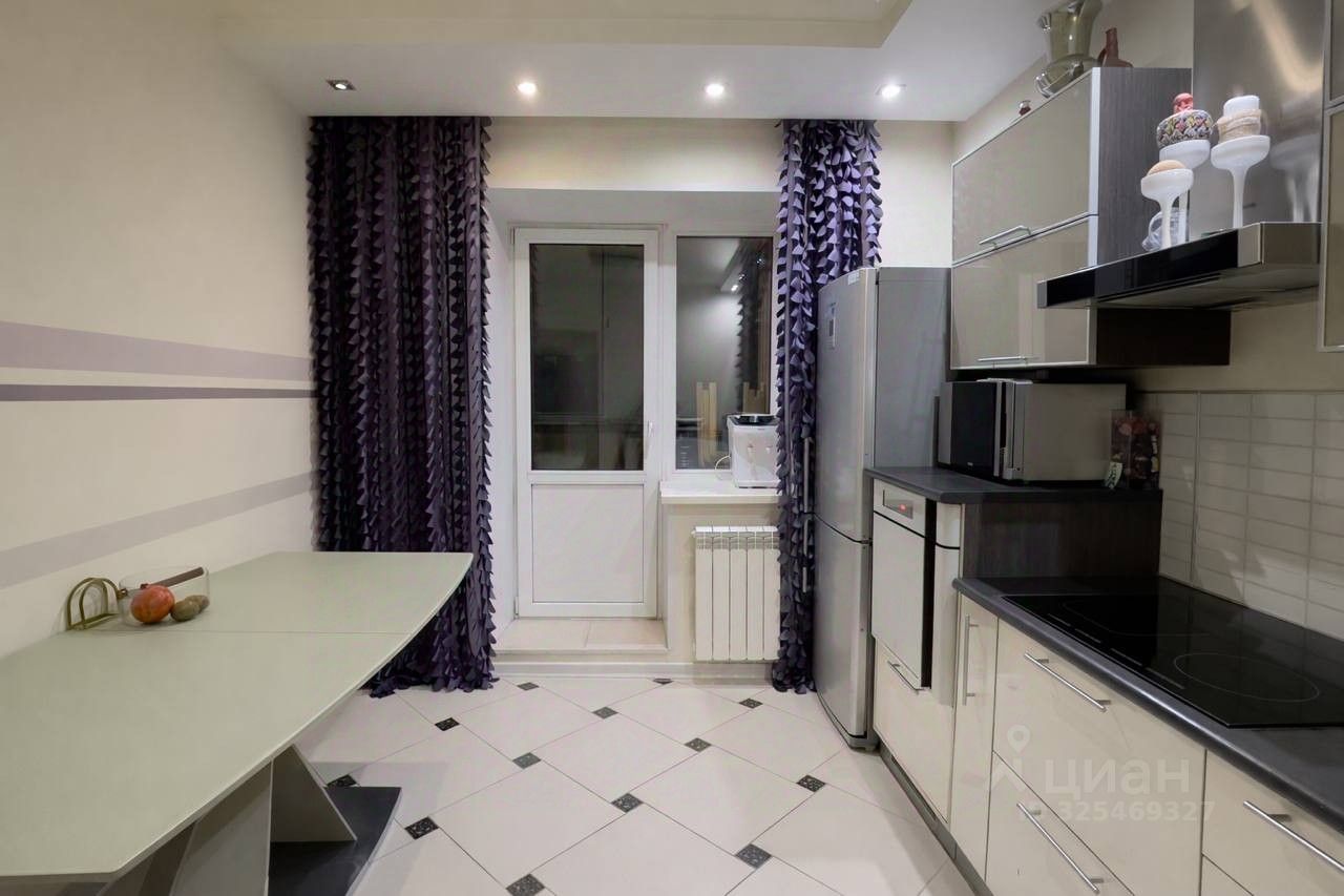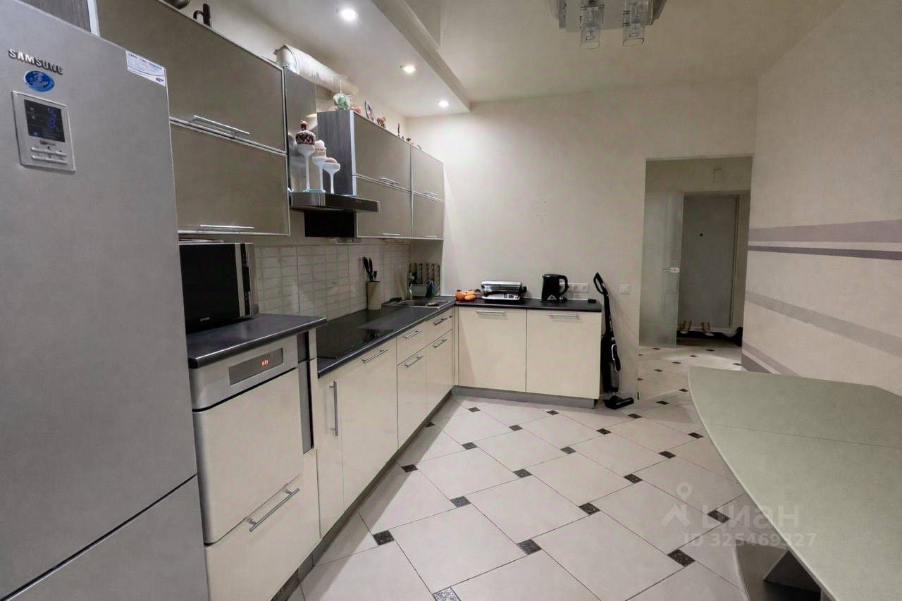 В квартире остаётся встроенная мебель и техника, удобный диван, телевизор, акустика, можно заезжать и жить.