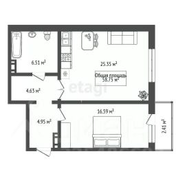 Общая площадь: 58,8 м²