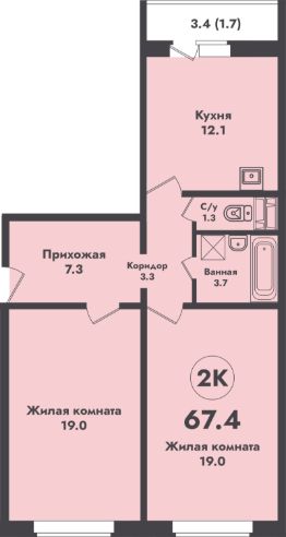 67,4 м²